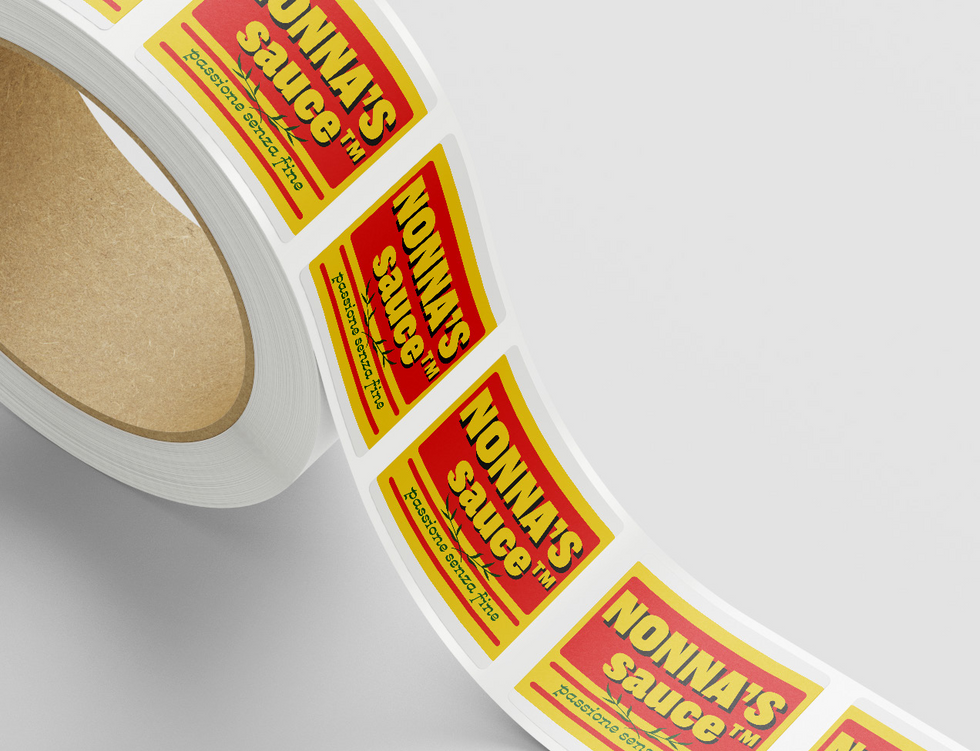 Volledige brandingcreatie voor fictief merk Nonna’s Sauce – logo, verpakking en visuele identiteit. (unpublished)